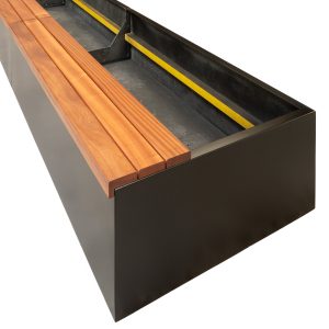 While the sizes of the trough shown for the timber seat provide an idea of what’s possible, Bench 24 can be fitted to any size trough, offering limitless design possibilities limited only by one’s imagination. This flexibility makes Bench 24 a versatile and customizable solution for various outdoor or indoor spaces, adding both functionality and aesthetic appeal.