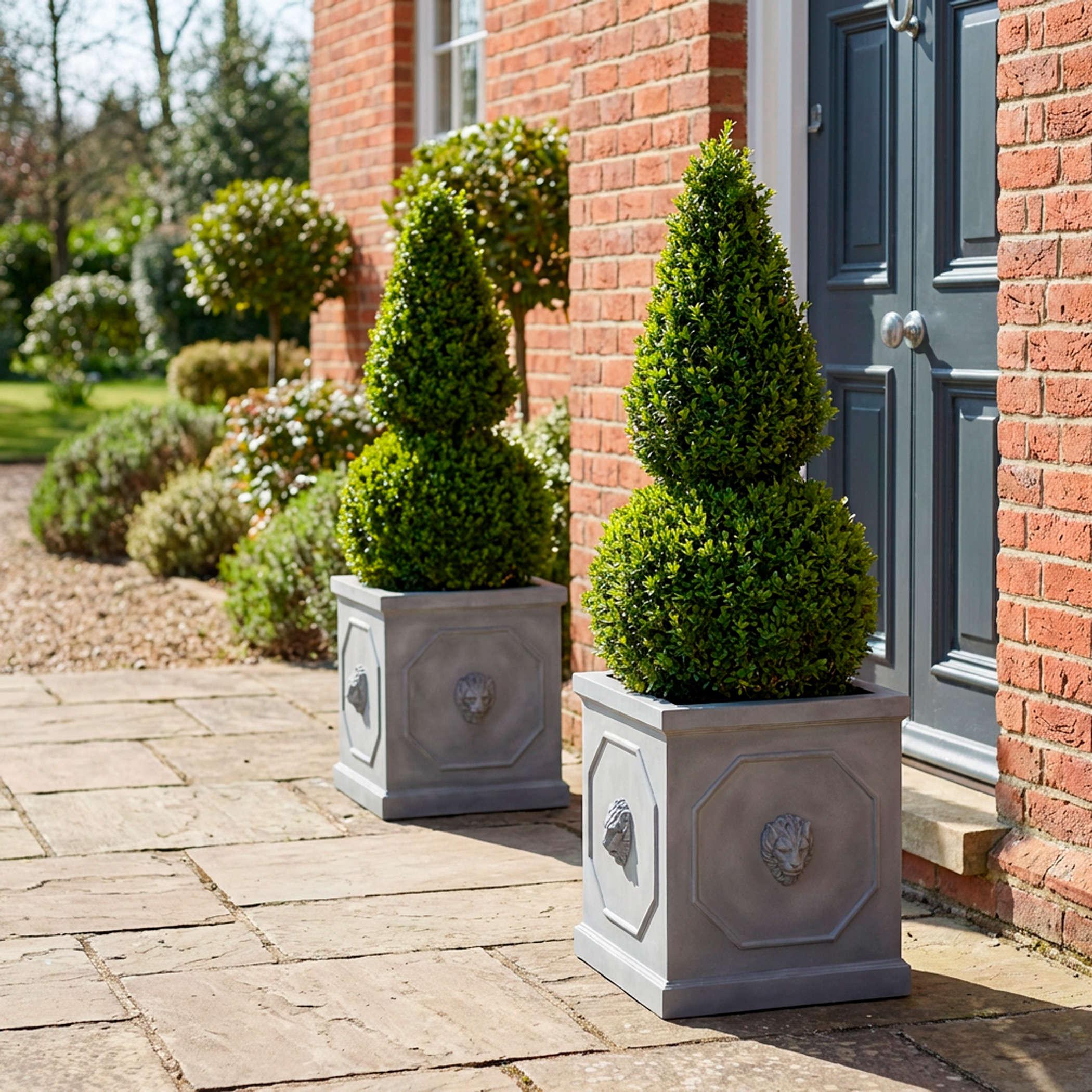 A standout feature of the Berkeley Collection is the optional lion’s head, which was inspired by the iconic door knocker of 10 Downing Street. This beautifully crafted lion’s head adds a regal touch, seamlessly complementing the classic styling of the planters. The lion enhances the overall look of the three planters in the collection: the window box, the tall square, and the trough, each with its own distinct charm yet all sharing the same elegant design language.