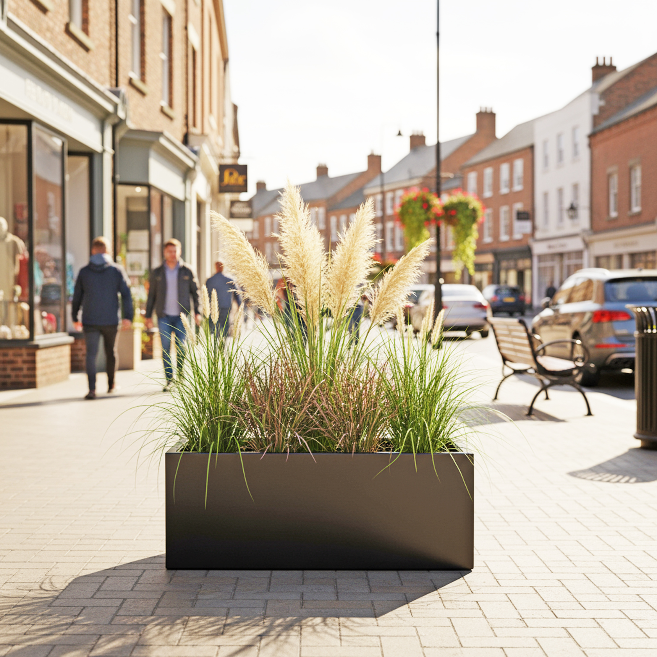 All troughs are available in any RAL colour matt, satin, gloss, metallic or special effect finishes such a concrete effect. (see our effects page) Also these troughs can be made in company colours or for that extra special touch can have corporate logos added.